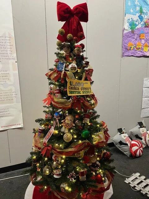 Celebration of Trees occurs at Christmastime, usually at the University Mall and organized by ANEW Place. Various local businesses decorate a Christmas tree and load the tree with gifts and gift cards. Visitors can just enjoy the season by looking at all the beautiful trees, or making a donation to ANEW Place. In return for a donation, you will receive raffle tickets that can be placed raffle boxes for the trees you like for a chance to win the entire tree, the decorations and all the gifts on or under it. All donations benefit individuals experiencing homelessness. Each year a tree is decorated in Katie’s honor. The visitor that won Katie’s 2025 tree received a $1,000 shopping spree downtown.